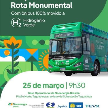 Em 25/03/2026, tive a oportunidade de presenciar o lançamento do Rota Monumental, um projeto piloto que funcionará no Distrito Federal com um ônibus 100% movido a hidrogênio verde, o primeiro ônibus comercial do Brasil movido a hidrogênio verde, em um trajeto turístico que percorrerá os principais cartões postais da capital federal, unindo inovação, turismo e sustentabilidade. E mais, será totalmente gratuito.